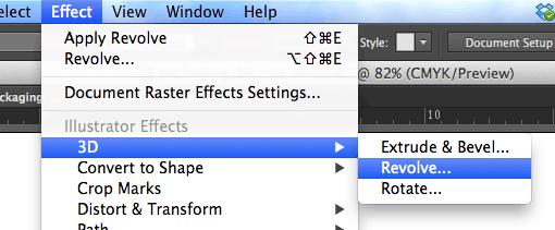 2. Next, select your object and go to Effect > 3D > Revolve…