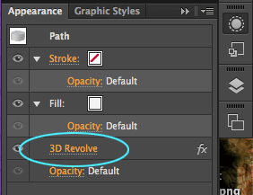 13. Select your can object, and in your Appearances pallete, click on 3D Revolve. This will open the 3D Effects Options palette and allow you to edit it.