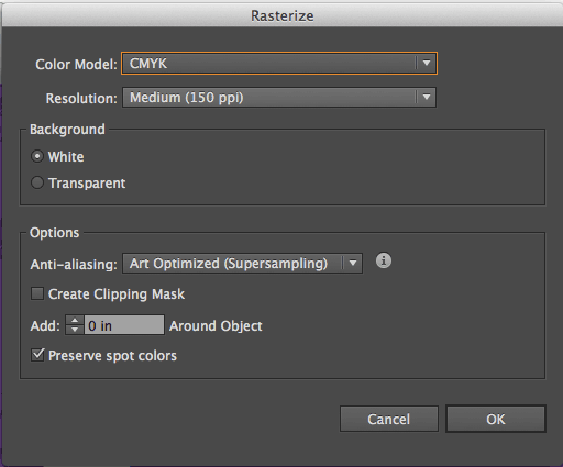 8. Select your new design artwork and choose Object > Rasterize…