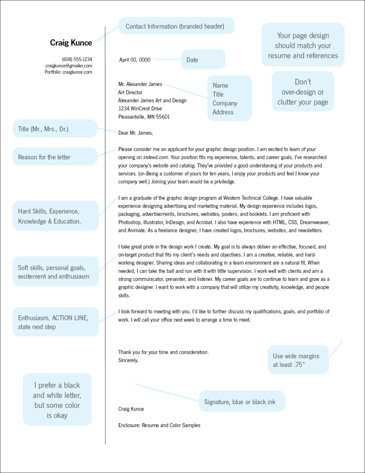 A cover letter is a form of professional business correspondence used to apply for a job. It is your first impression—so make it count. You are a professional graphic designer now, so the way you apply for a job should be professional as well. Businesses will be expecting a cover letter to accompany your resume. Most will ask for it directly in their job posting.