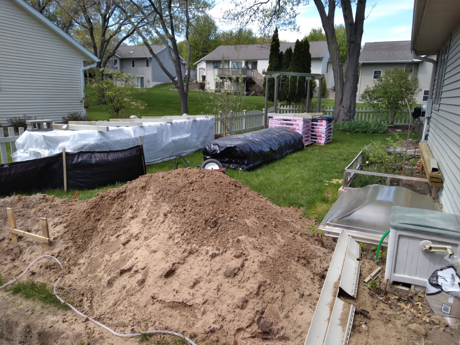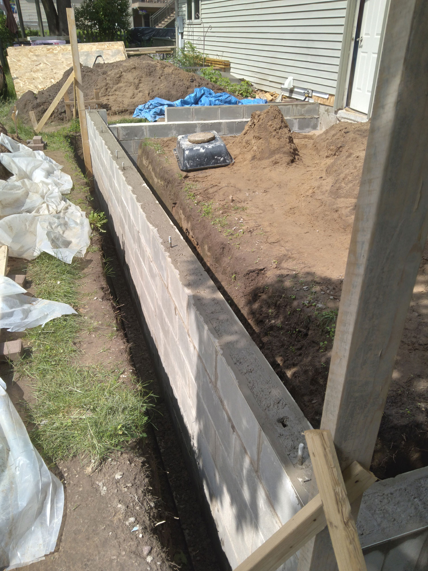 While it’s good to reminisce now, it was also good not to dwell on it as we went along. Thinking back, holy cow, we were kind of driven—in a good way. We mixed our own concrete, laid 450 concrete wall blocks, re-sided our entire house (so it all matched), hauled 18 yards of gravel in small loads in our trusty 4×8 trailer, and laid 1900 pavers for the driveway, pathway, and small patio.
