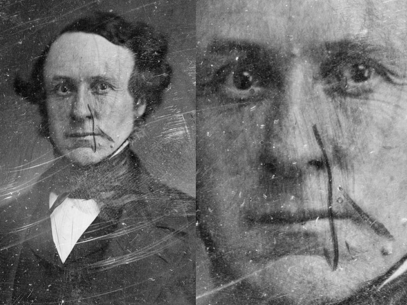 Be sure to choose a photo that is restorable and not too damaged. Abe Lincoln below is a good photo to restore. It has some damage but no too much. Notice the sharp focus in this original photograph. There’s a lot of detail to work with.