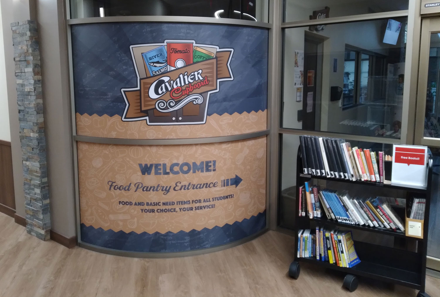 In addition, we are the campus hub for social and emotional support. Access the Cavalier Cupboard food pantry located just inside the main doors, meet with a counselor, find learning support and accommodation services, participate in community activities, or get involved as a volunteer!